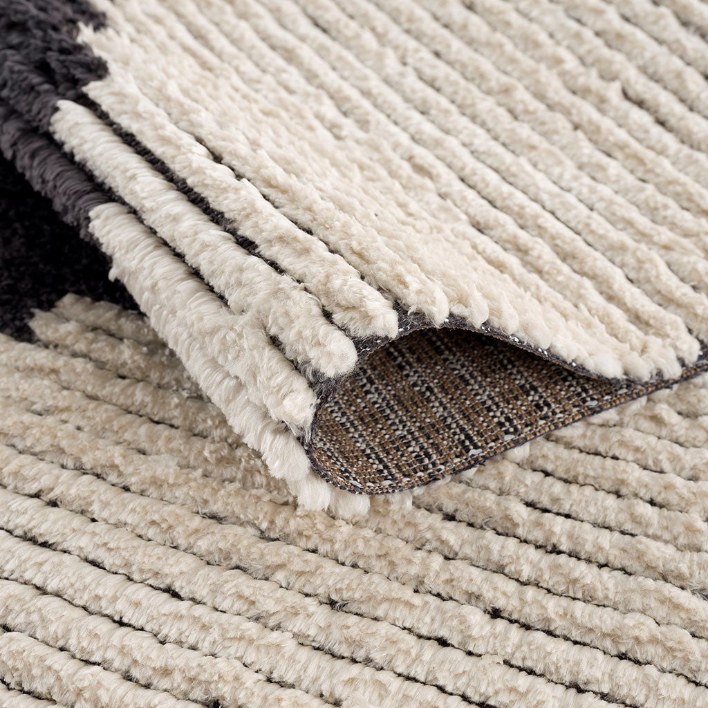 Complete your home decor with the bold allure of the Amanda Black & Ivory Modern Area Rug. This plush area rug features a super soft, high pile with a black and ivory contemporary design to create a contrasting modern look. A sprayed transparent latex reverse helps prevent the rug from sliding, but a rug pad is still highly recommended to keep the rug in place. To easily clean this machine woven plush rug use a vacuum without a brush or simply spot clean. Elevate the style of your living space by incorporating this modern area rug into your home.