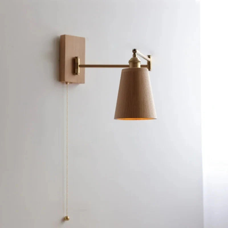 Bring warmth and versatility to your space with the Ashwood Pivot Wall Sconce. Designed with a rich walnut ash wood base and accented by brass hardware, this wall lamp combines modern functionality with timeless style. Its 180-degree rotating arm allows you to direct light exactly where you need it — perfect for bedside reading, illuminating a cozy nook, or enhancing a bathroom mirror setup. Choose from three distinct lampshade styles (round, cone, or globe) to match your aesthetic, and enjoy the convenience of either a pull chain switch or plug-in setup.