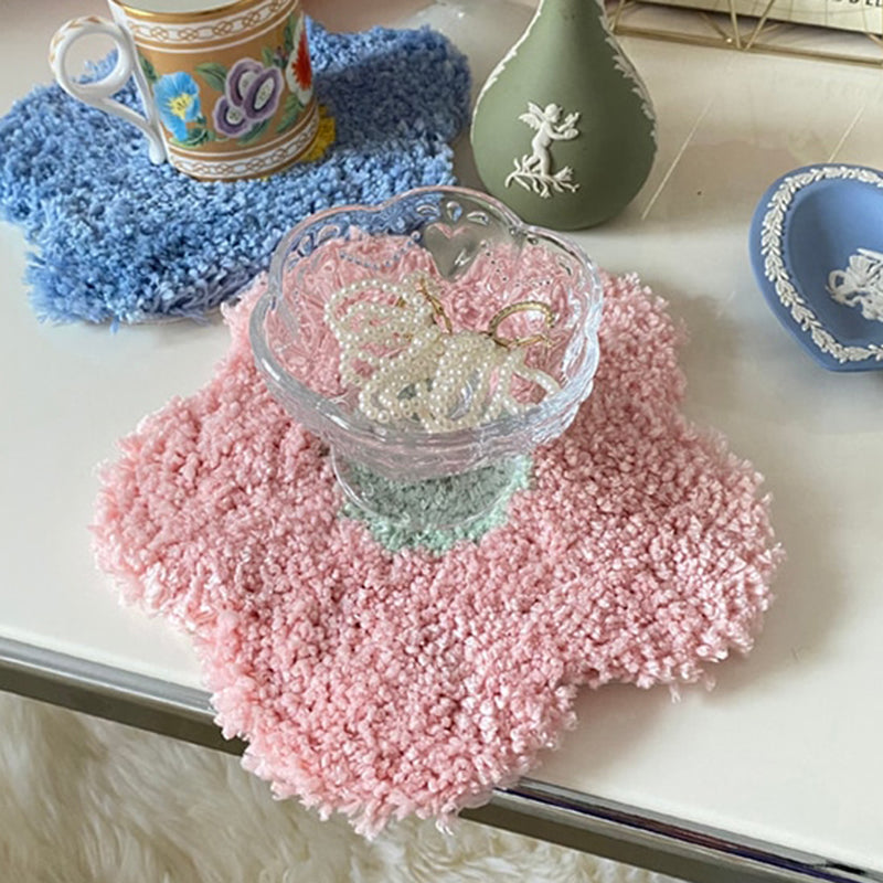 Each piece is lovingly hand-made, lending a unique touch to your decor. What sets this mat apart is its luxurious fluffy texture, inviting you to indulge in its softness. Whether you're hosting a dinner party or simply adding a touch of charm to your home, our Flower Hand Tufted Coaster & Mat is the ideal choice.