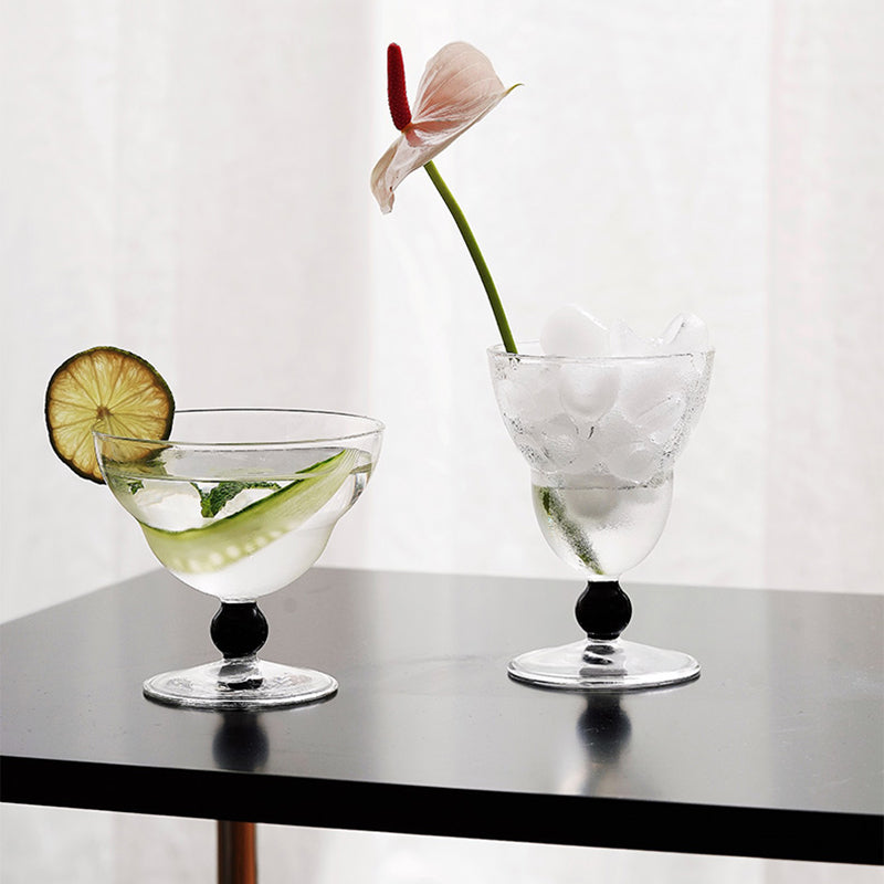 Bring minimalism and eye-catching beauty to your next gathering and prepare to quench your thirst in style. Whether you’re enjoying a refreshing glass of water on a hot day, pouring iced tea for a friend or serving up a specialty cocktail, our Spot A Dot Serving Glass Cups & Drinkware bring style to the gathering. These clear glass cups feature a bold black ball along the stem. Order several of the short and high glasses to serve family and friends with a touch of sophistication. Each beautifully crafted Spot A Dot Serving Glass Cup has a shapely silhouette and is translucent glass with a black glass accent. These glasses are a perfect match with the chic Pour A Dot Glass Cup which makes a fabulous decanter. Beautifully crafted of eco-friendly clear and colored glass, these elegant drinking cups enhance any table setting, patio tray or bar cart. They’re dishwasher friendly and can be put in the microwave for reheating hot beverages—cheers to that!