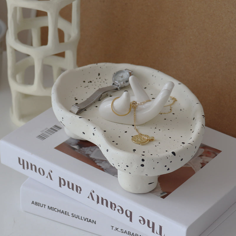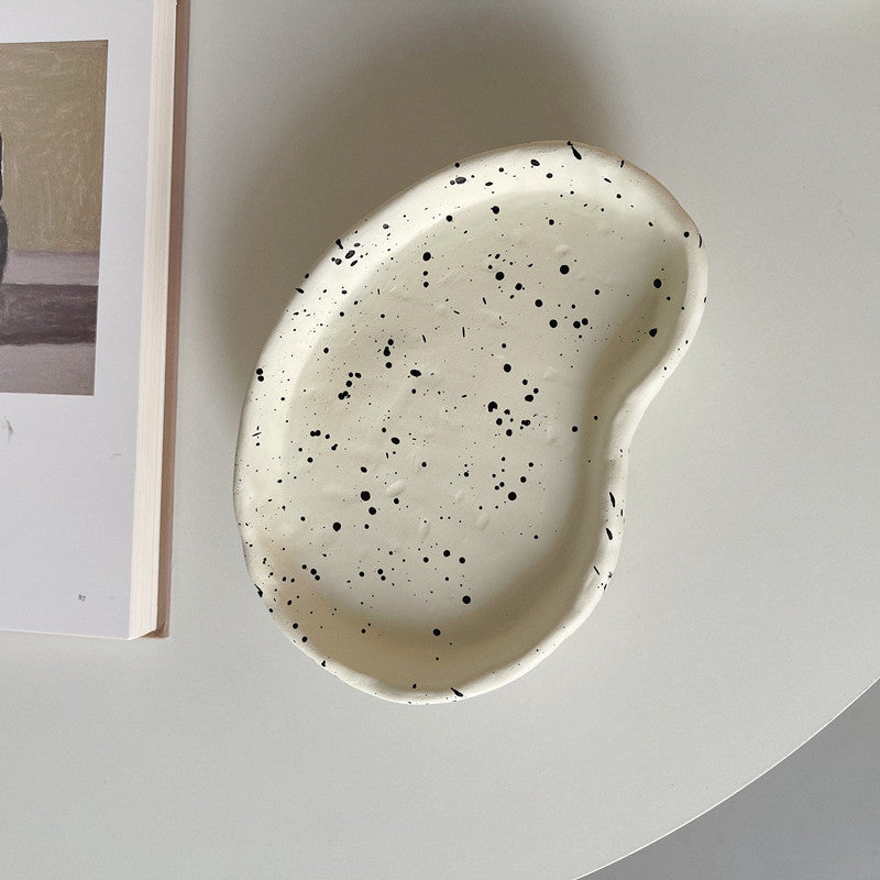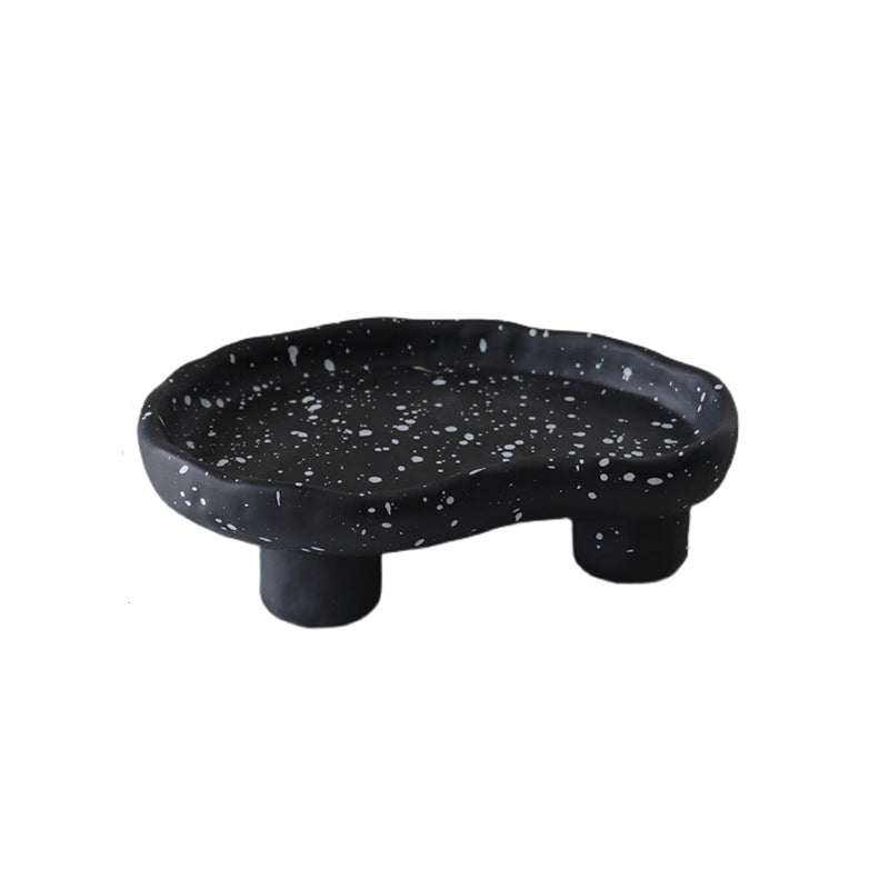 Stop the presses, our Ink Spots Footed Catchall Tray is making headlines with its splashy design and unexpected shape. This eye-catching resin tray makes a modern catchall for keys and pocket contents on an entryway table or jewelry and trinkets on a bedroom dresser. It’s ideal for holding office essentials on a desk, as well as your favorite beauty and makeup products on a bathroom vanity. Display a candle on this tray on a bedside table, or keep a reed fragrance on it to refresh a guest bedroom. With chunky feet at the bottom, this pretty tray is designed to get noticed. A splatter of ink spots adorns this tray in either black ink on white or white ink on black. This eco-friendly resin tray is both decorative and practical. It makes a cheery addition to any room in your home. Offer the Ink Spots Footed Catchall Tray as a gift—it lends a modern touch to all settings.