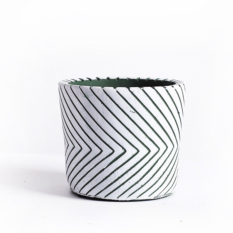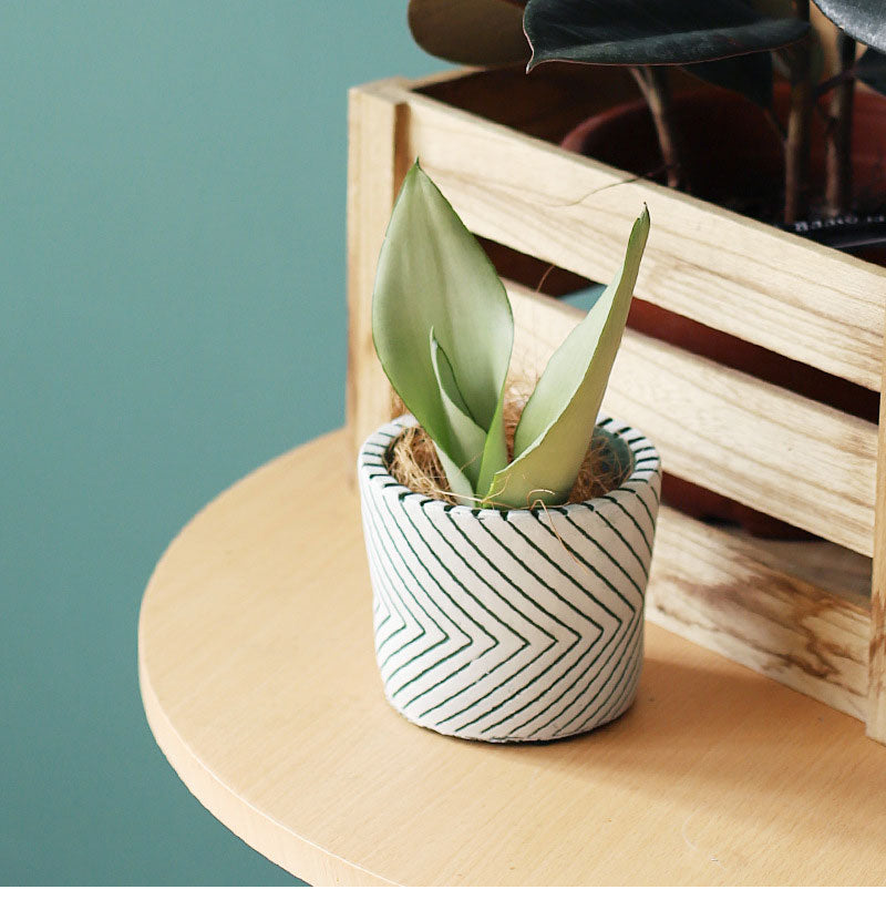 These pretty little ceramic planters are guaranteed to make a positive imprint on your home décor. Modern minimalism has never looked better. Our Imprint Painted Ceramic Planters make a statement on a table, mantel, windowsill or in a macrame hanger. We love how charming these ceramic planters are. Plant a succulent or let an orchid bloom gracefully in our Black, White or Green planter. Line the kitchen counter or windowsill with these planters and fill them with your very own herb garden. Offer some herbs in this planter as a gift. It makes a wonderful hostess gift or a surprise for someone who loves to cook. Pop some greenery into these planters and create a welcoming environment for family and friends. Simple line designs are hand painted to give these fun cement planters, adding a touch of whimsy wherever you place them. They would blend beautifully in bohemian or modern décor styles. Each planter has a drainage hole and anti-skid base.