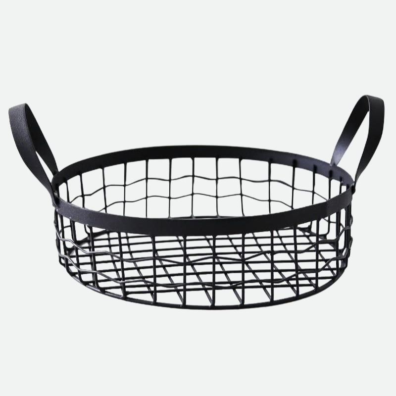 This round iron grid basket features a stylish blend of rustic charm and industrial chic aesthetic that upgrades the look of any space. Whether used as a fruit or vegetable basket, a coffee table centerpiece or an accessory basket, this versatile decorative piece is a chic must-have for your decorating and organizational needs.