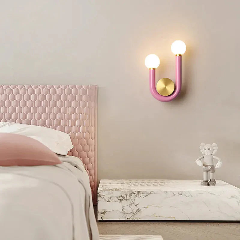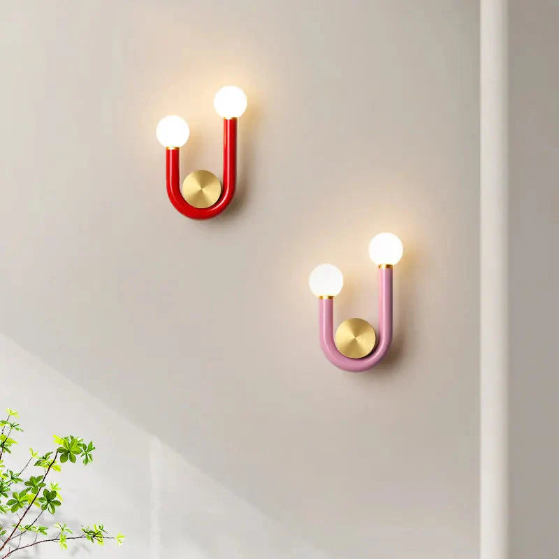 Add a touch of modern elegance to your space with the Luna U-Shaped Wall Lamp. This stylish wall lamp features a sleek, curved design that creates a contemporary and playful vibe in any room. The U-shaped frame, available in vibrant colors like red and pink, is complemented by a warm, soft glow from the spherical LED bulbs, making it perfect for nurseries, children's rooms, or any space that needs a pop of color and light.