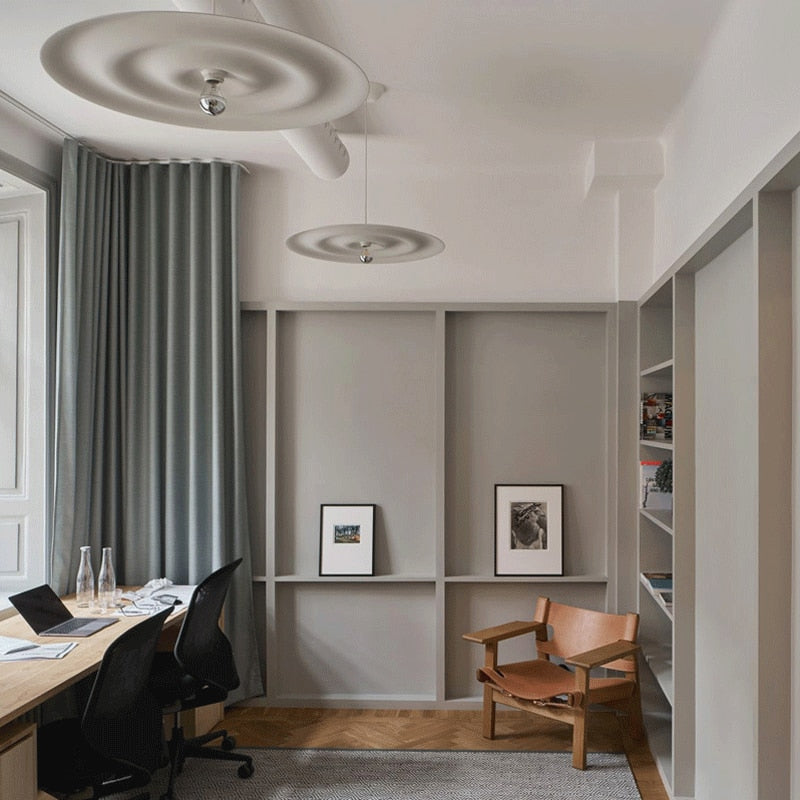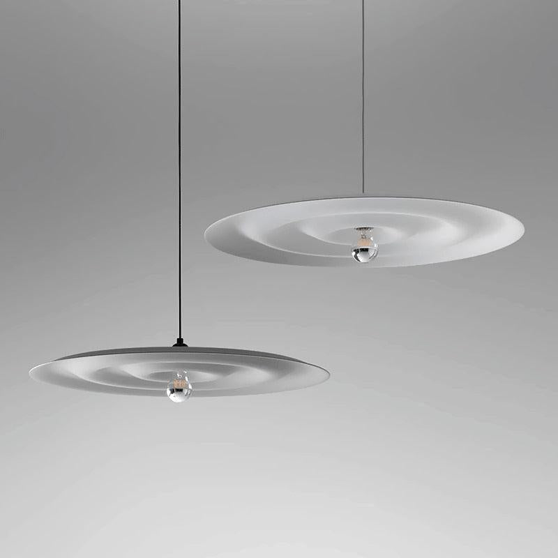 You’ll make waves the moment this handsome light is hung up in your home or office. This modern pendant light creates the illusion of moving sound waves. A rippled design for a trendy LED bulb gives this unique pendant lamp its head-turning style. Use this stunning light to brighten up a corridor or entryway. Line several along a hallway to light the way for family members. This chic light makes a statement above a dining table. Hang two above a kitchen island. Use this stylish pendant light above a desk in an office or retail space. Pair this pendant with the matching Sound Wave Minimalist Wall Lamp for a cohesive look throughout your home or business. Crafted of aluminum with a frosted paint finish, this round rippled pendant is available in two sizes and your choice of Light Grey or White. You’ll love how this unique pendant light adds visual interest to a livingroom or bedroom and creates ambiance in a kitchen breakfast nook. Our Sound Wave Pendant Light has a minimalist design with maximum impact.