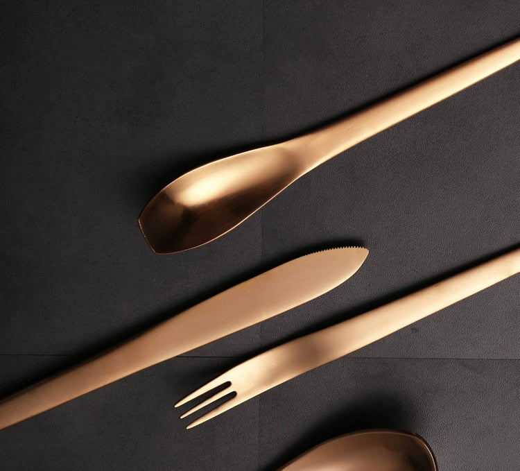 Elevate your everyday dining with our handcrafted stainless steel cutlery, featuring an elegant rose gold-tone finish and a frosted handle for a polished aesthetic. Perfect for everyday use or gifting, the set includes everything you need to enjoy your favorite meals.