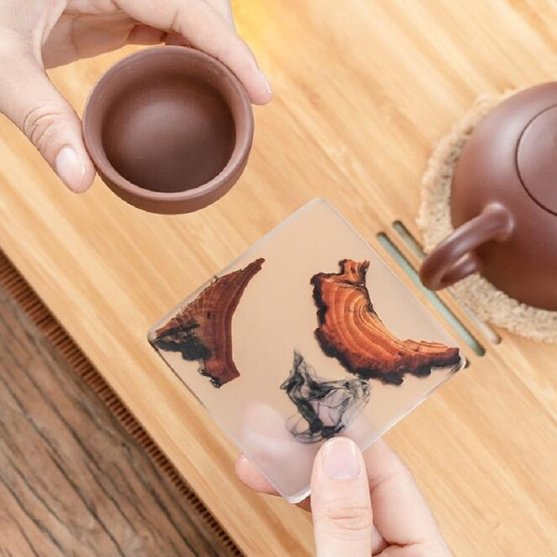Available in round and square shapes to fit your personal style preference, these gorgeous coasters will add a unique and stylish flair to complement your glassware collection. Embedded with gorgeous wood chips and black swirls in a distinct pattern, these Natural Wood & Resin Coasters are guaranteed to captivate any welcome guest.