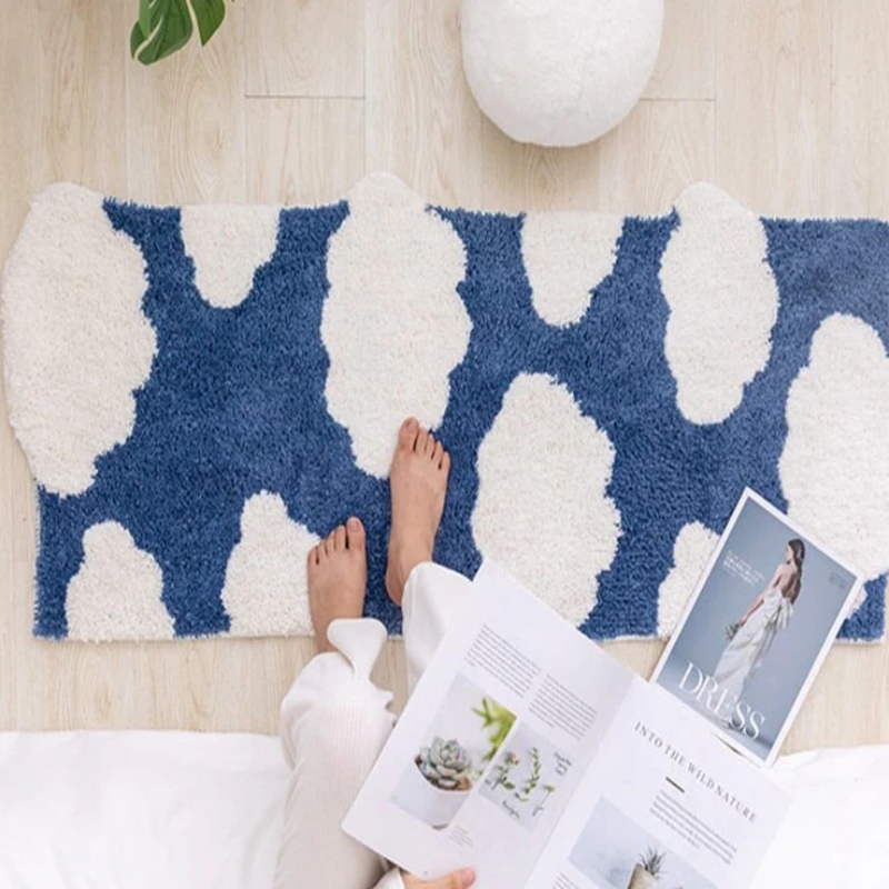 Drift into comfort with every step. The Walking on Clouds Soft Pile Tufted Rug brings sky-high charm right to your floors with its playful cloud motif and dreamy silhouette. Featuring fluffy white clouds floating across a deep blue backdrop, this rug offers a serene, whimsical touch—perfect for bedrooms, nurseries, or any space that could use a little lightness. Its soft, high-pile tufted surface feels plush underfoot, while the subtly contoured edges mimic the curves of real clouds for an extra dose of magic. Whether you're creating a calming corner or just want a statement runner that soothes the senses, this rug is sure to lift your space—and your mood.
