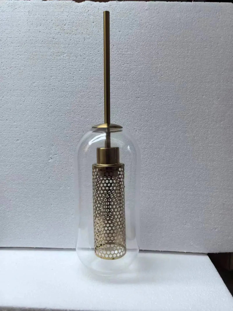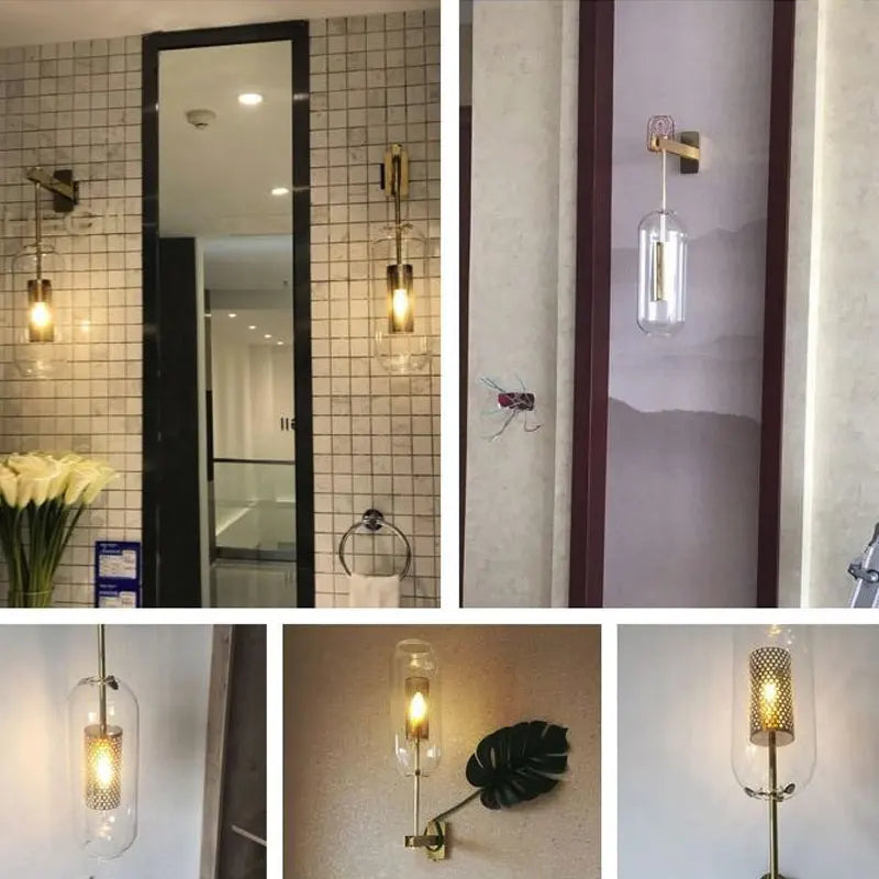 Add a touch of elegance to your interiors with the Radiant Glow Post-Modern Glass Wall Sconce. This sophisticated lighting fixture combines modern design with timeless charm, making it a versatile choice for any decor style. Its clear glass shade surrounds a honeycomb-patterned golden core, casting enchanting light and shadow patterns that enhance the ambiance of any space. The sleek brass-tone frame not only provides durability but also adds a luxurious touch to the overall design.