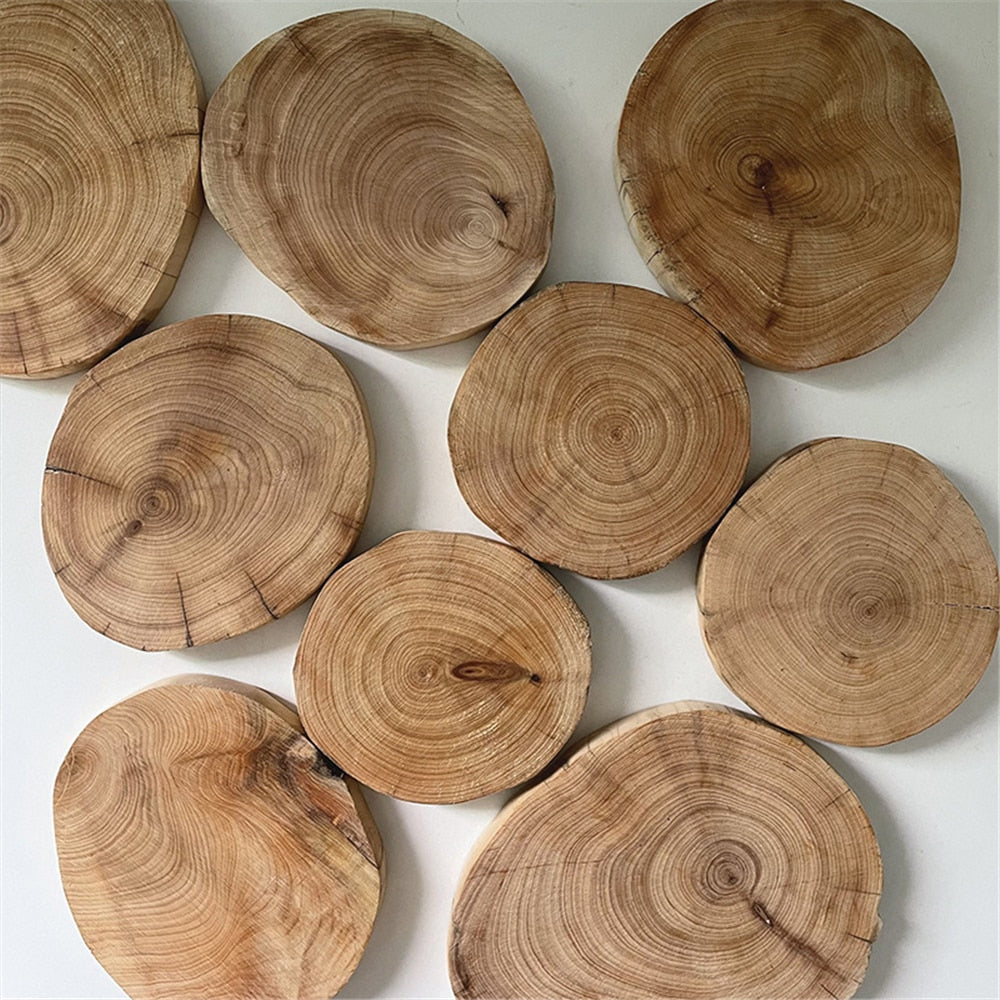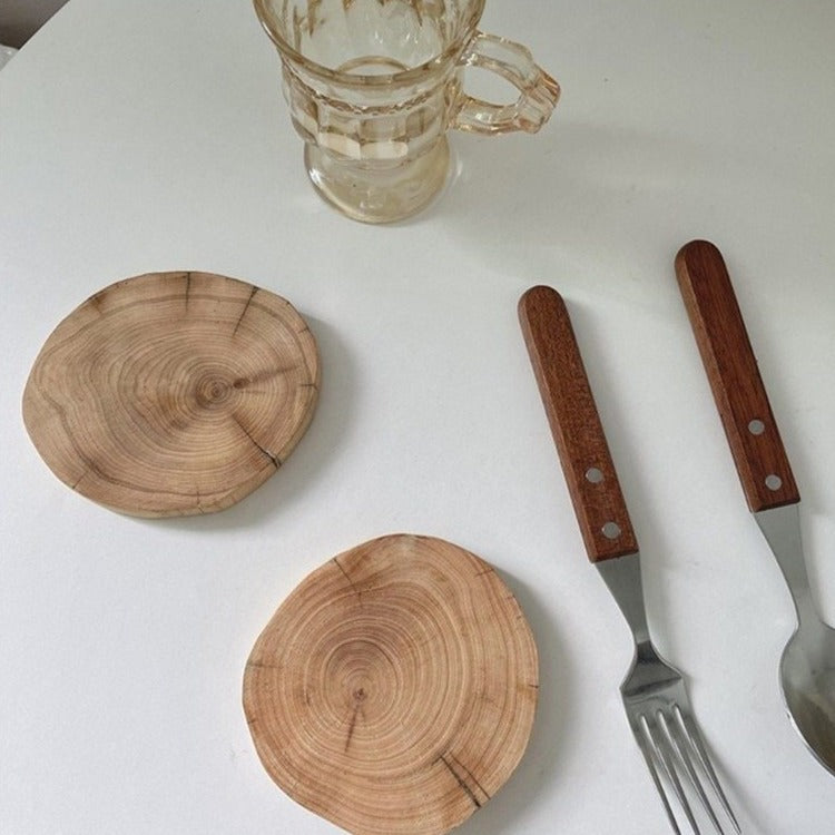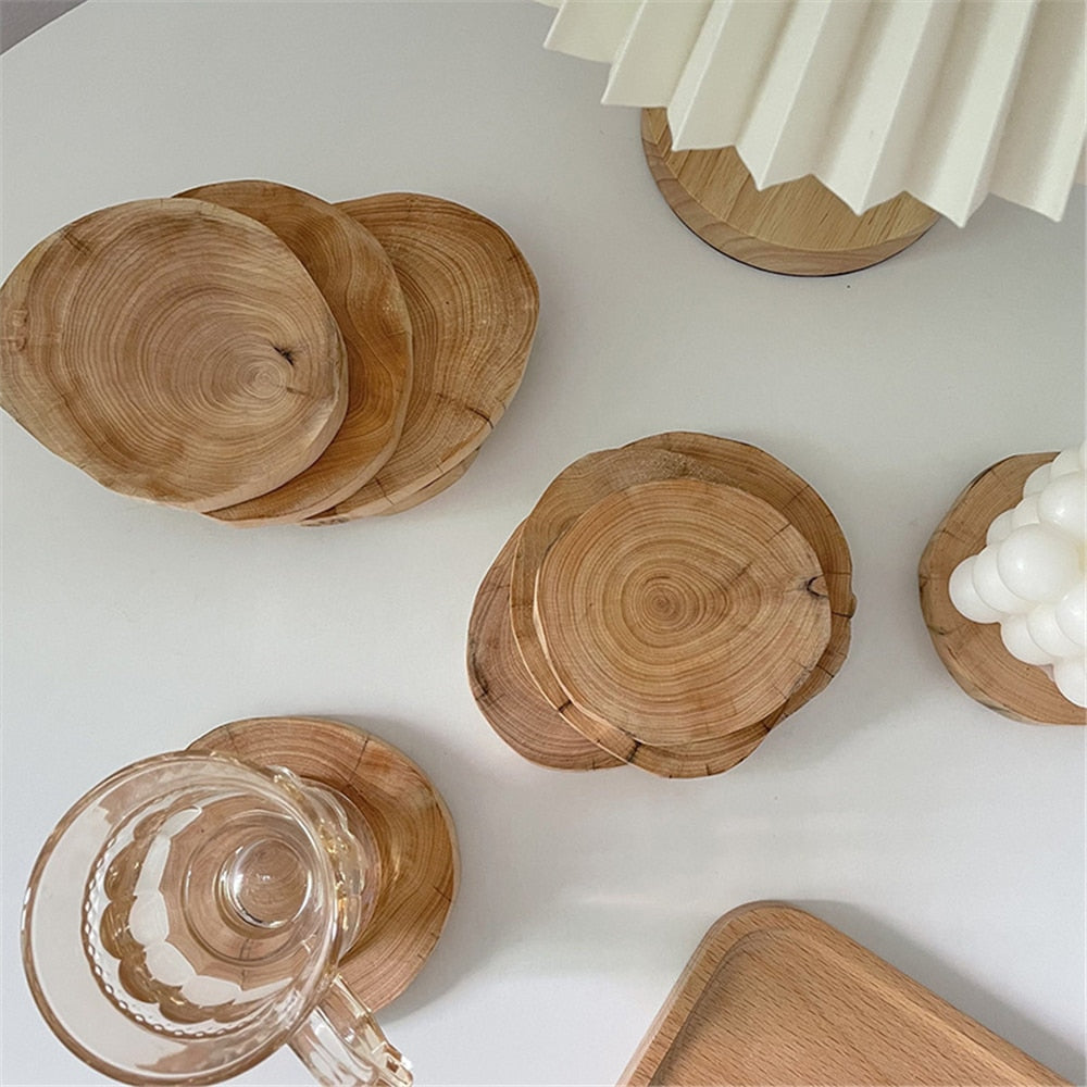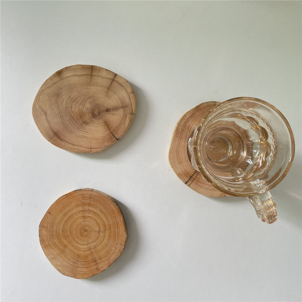 Add a touch of rustic charm to your home decor with these stunning wooden coasters. Handcrafted by skilled artisans, each coaster is made from natural wood and comes in irregular round cuts. Use them for setting down your drinks in style or as chic mini trays for decorative accents such as candles - the possibilities are endless.