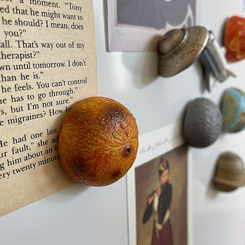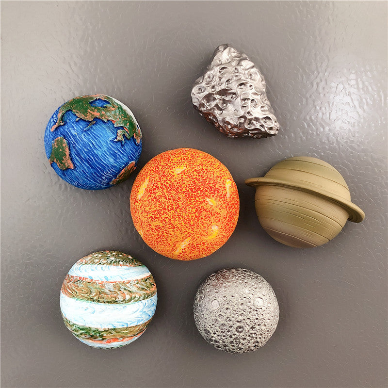 Create a world of fun on the front of your refrigerator. Our Refrigerator Magnetic Mini Stickers are decorative and functional. Keep reminders right in front of you. Jot down a grocery list and attach it to the fridge or other magnetic surface, with our whimsical magnets in your choice of planet, zen astronaut, spaceship or UFO. These charming magnets are great in an office lunch room or to keep phone messages on a magnetic bulletin board to stay organized. Keep important phone numbers handy at home or at work. Kids will love these magnets holding their artwork on the fridge. Or use them above a homework station to keep due dates and homework assignments where they can see them. Our handcrafted magnets make a colorful addition to the home, work space or classroom. They’re out-of-this-world adorable and add an artistic touch to a child or teen’s room. Collect the entire ‘galaxy’ of Refrigerator Magnetic Mini Stickers for a colorful and fun display.