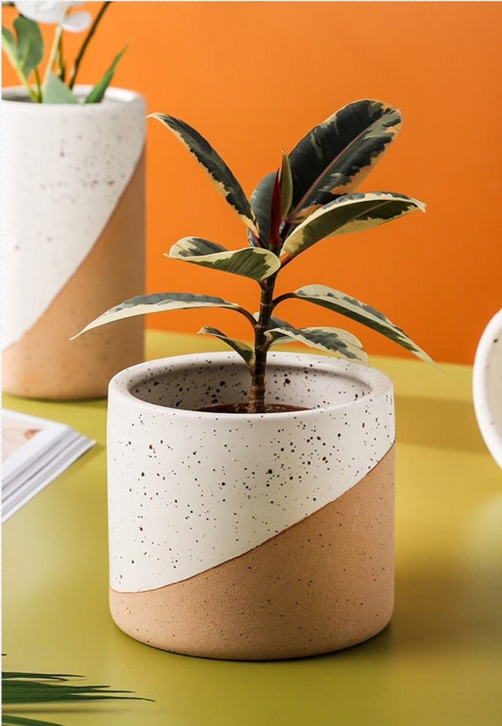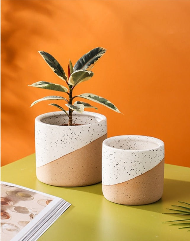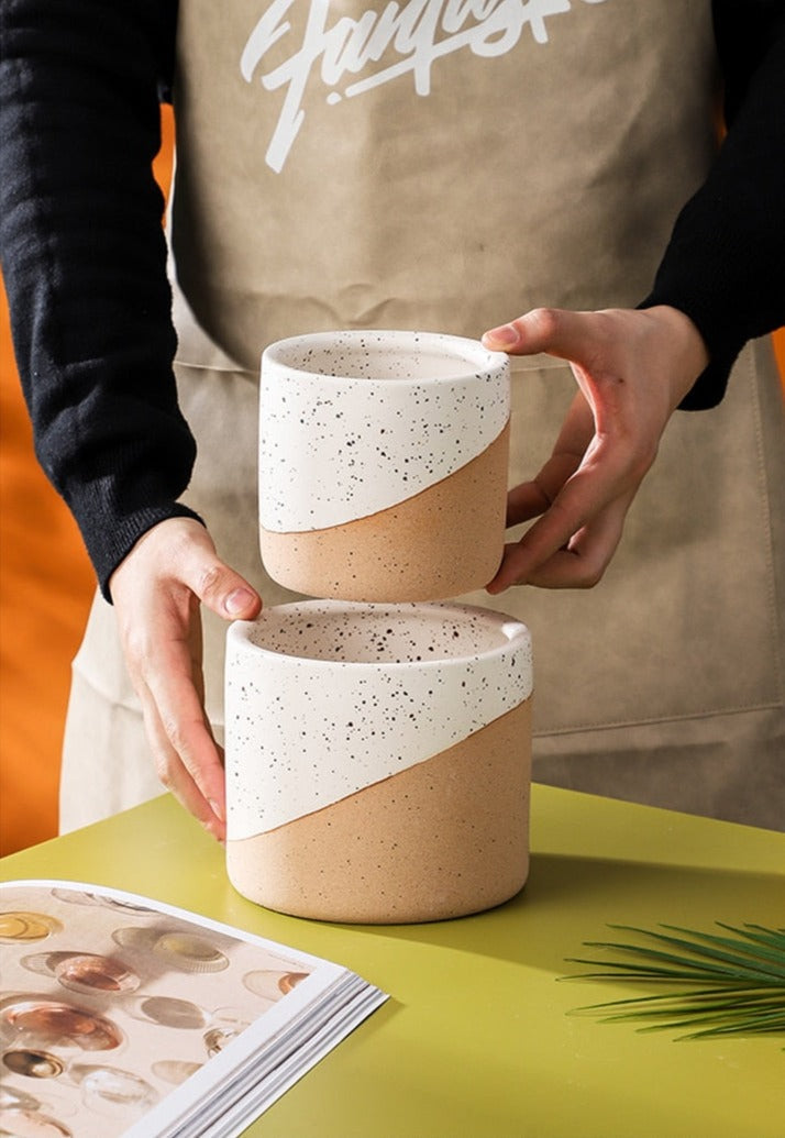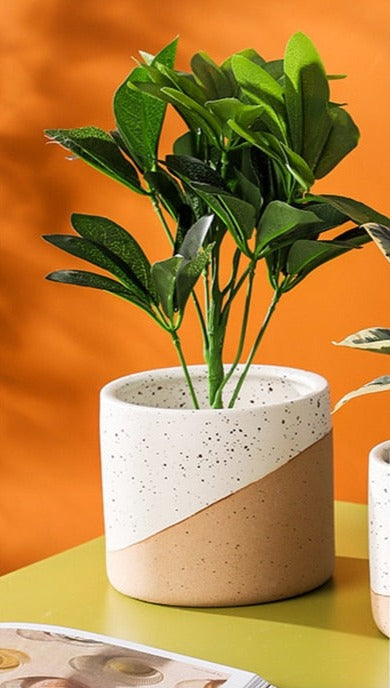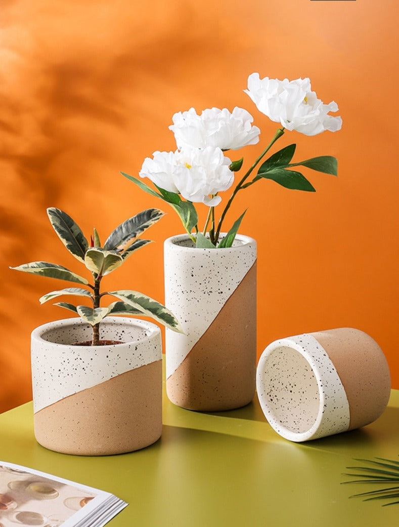 Offer your houseplants a welcoming sanctuary with our lovely ceramic planter. Artistically sculpted and beautifully crafted, this elegant planter is the ideal combination of grace and sophistication. It’s sure to add an artisanal touch to any space. With a terracotta and painted linen finish, you can use this planter alone or group a few sizes together for a stylish look that enhances a home or office. This ceramic planter has a textured surface, with terracotta on the lower portion and speckled black and white paint on the upper. Whether you love the farmhouse look or prefer Scandinavian-style simplicity, our Sanctuary Linen Ceramic Planter offers the best of both worlds. This planter is the perfect accent to brighten up a bathroom, add life to a kitchen window sill or bring greenery to a living room, nursery, dining room or office. Our stylish planter offers endless decorating possibilities. Available in three sizes, it’s the right choice for showcasing real or faux florals.