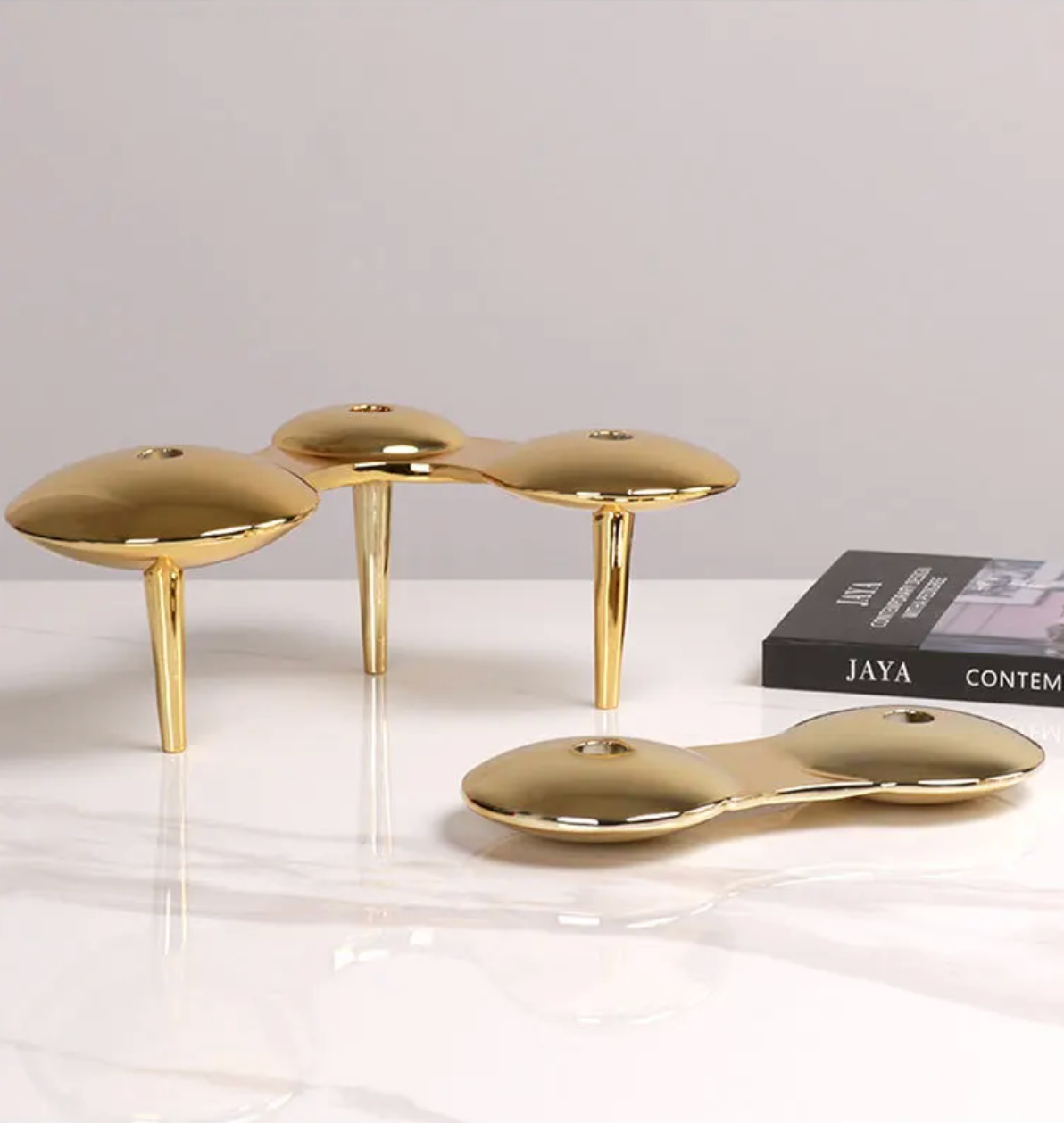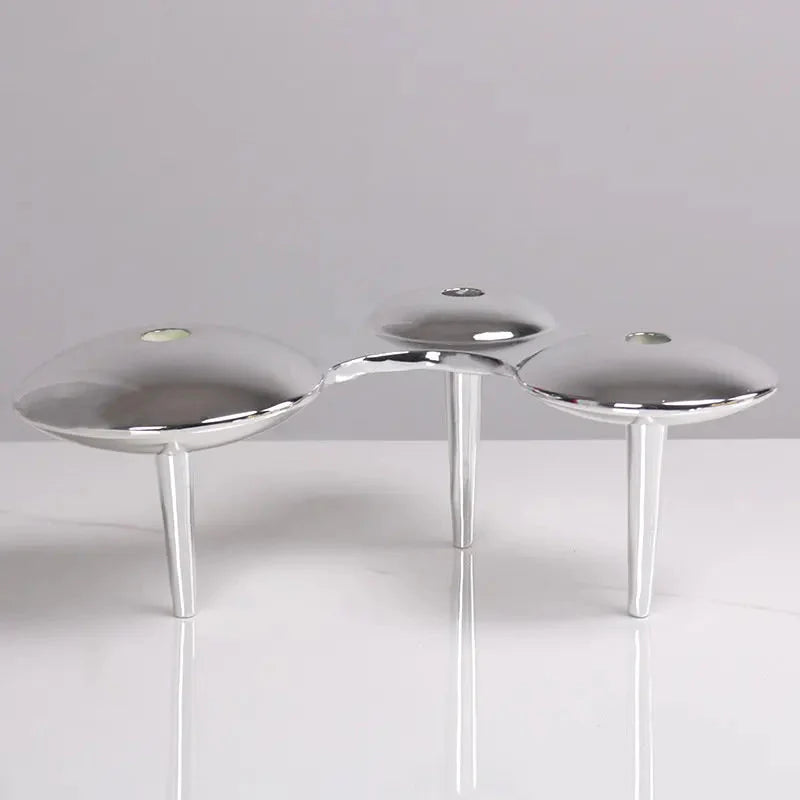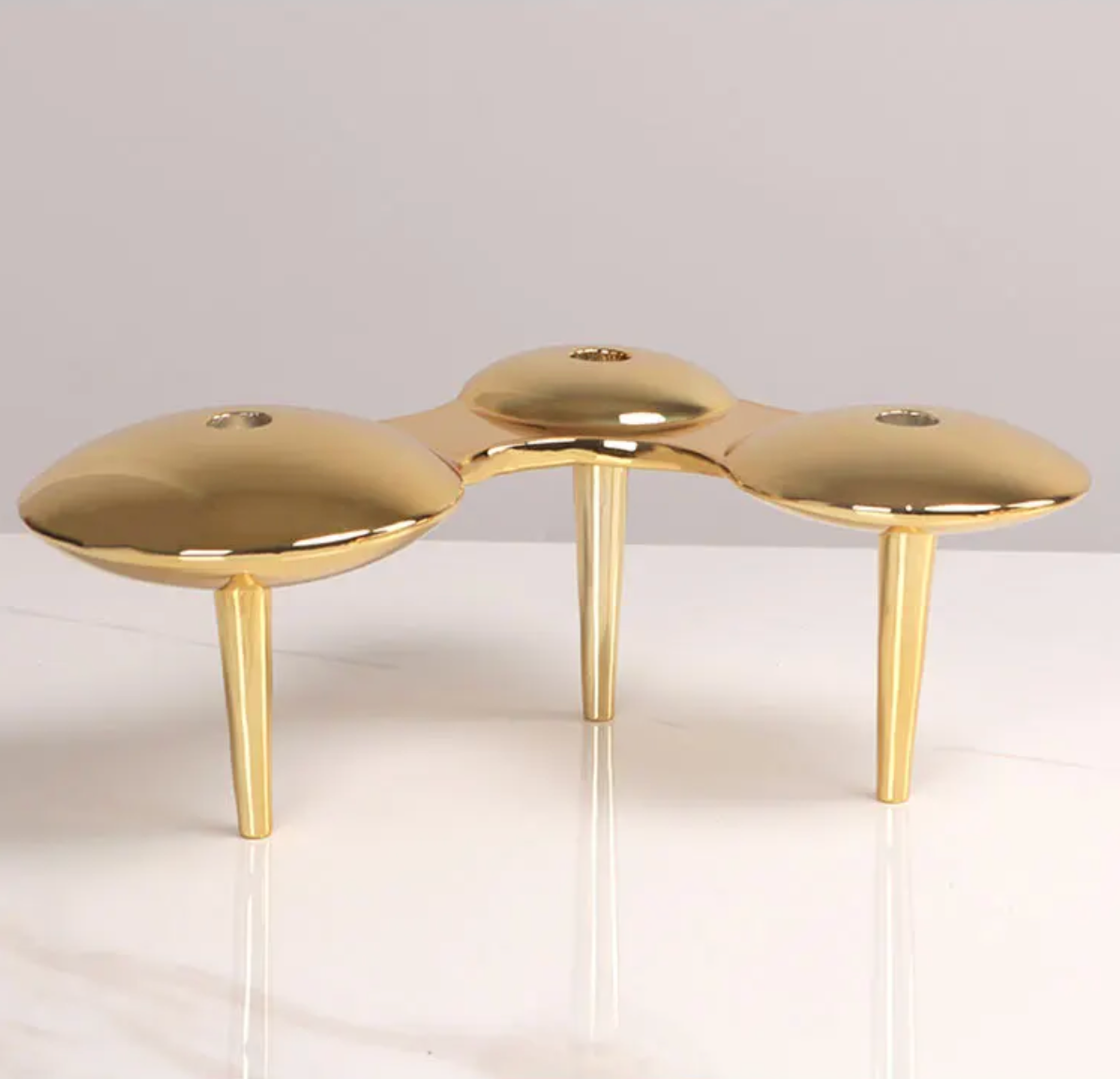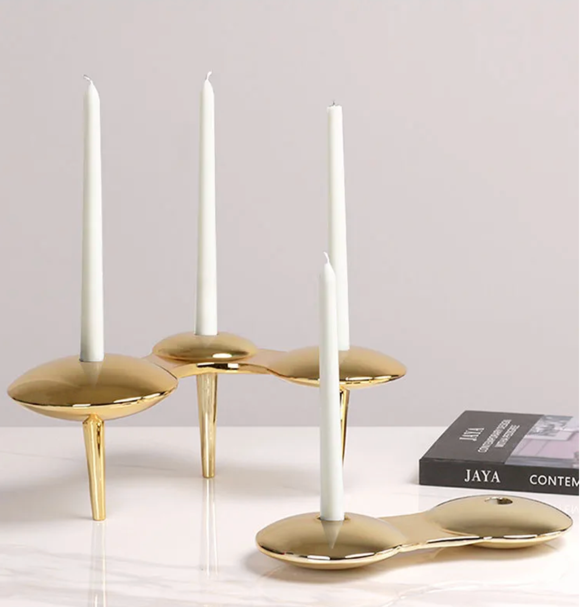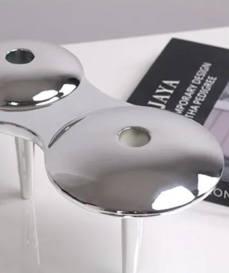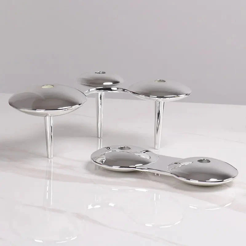 The Satellite Cell Candle Holders bring futuristic elegance straight to your tabletop. Designed with a sleek, fluid silhouette that mimics orbiting satellites, these sculptural pieces blur the line between functional lighting and modern art. Their polished metallic finish—available in silver, gold, or black—reflects candlelight beautifully, creating a soft glow that dances across any surface. Whether displayed as a centerpiece or styled in clusters for dramatic impact, these holders turn ordinary taper candles into striking design statements. Each piece balances a minimalist form with a space-age twist, making them as conversation-worthy as they are practical.
