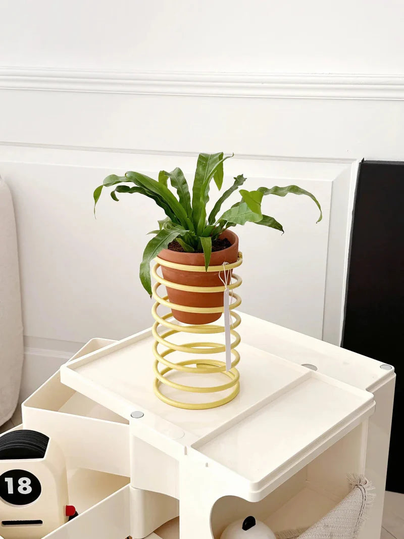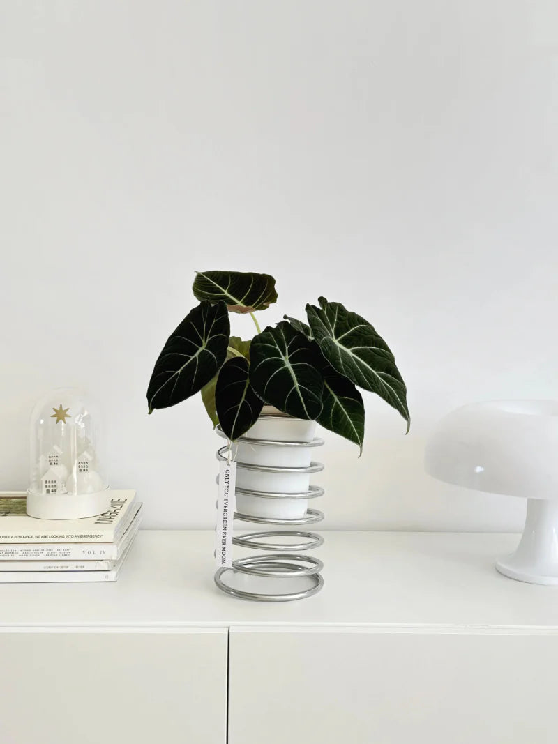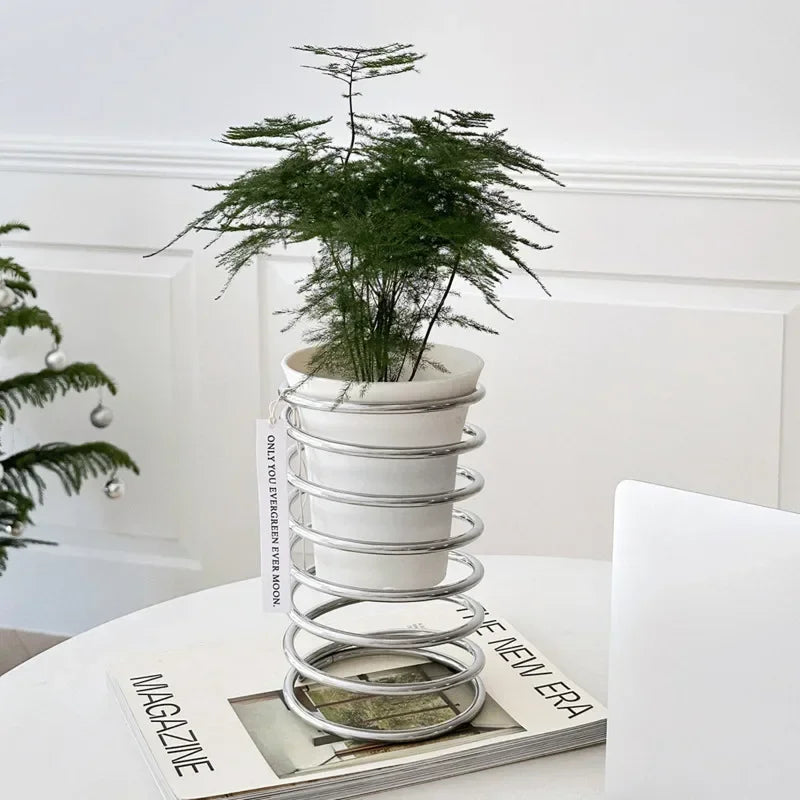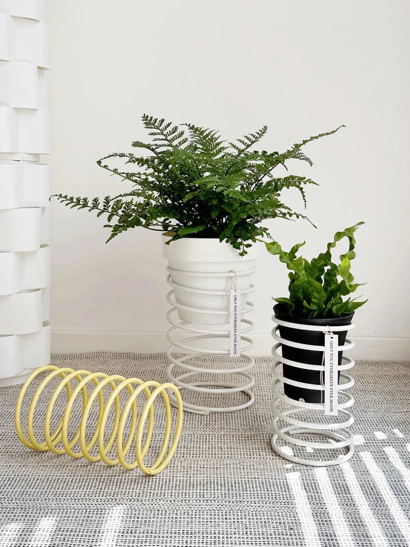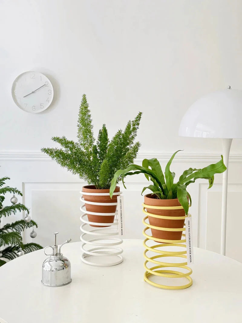 Elevate your greenery with our Spring Wire Planter Stand, a sleek fusion of sophistication and functionality. Crafted from durable stainless steel and available in a range of enchanting finishes including plated or lacquered, this stand seamlessly complements any space. Whether you prefer the timeless allure of silver, the crisp purity of white, the refreshing vitality of green, or the vibrant warmth of yellow, we have a hue to match your style. Perfect for showcasing your favorite botanicals indoors or out, its minimalist design adds a touch of modern elegance to your décor. Embrace the beauty of nature in a stand that's as resilient as it is charming.