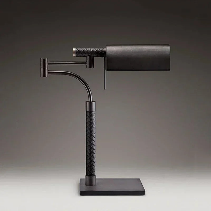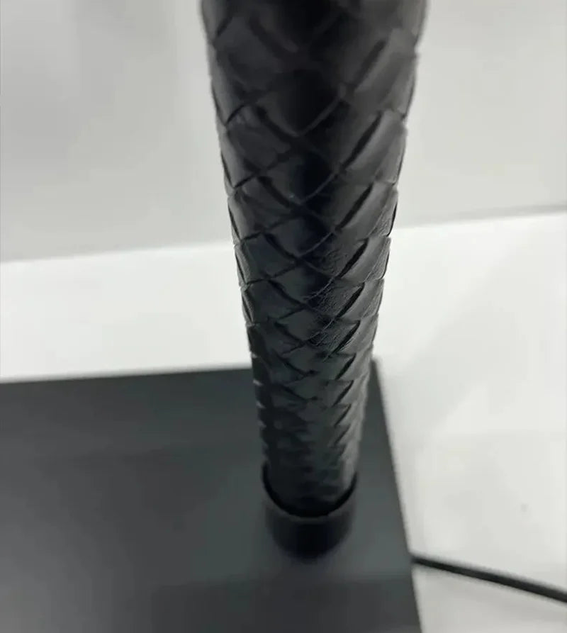 - Finish: Matte black metal with braided-texture synthetic leather column