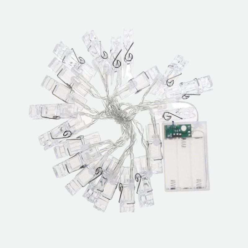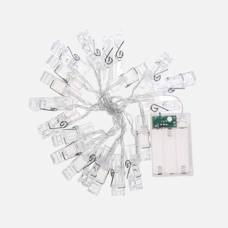 The Twinkle LED String Lights Photo Holder provides you with versatile lighting wherever you place it. Simply wrap its flexible strings onto any ledge or pole to easily give your space bright lighting. Plus, the Twinkle LED String Lights Photo Holder gives you the freedom to personalize the string with images that you keep close to your heart. This way, you can watch the lights twinkle while you get reminded of your most cherished memories.