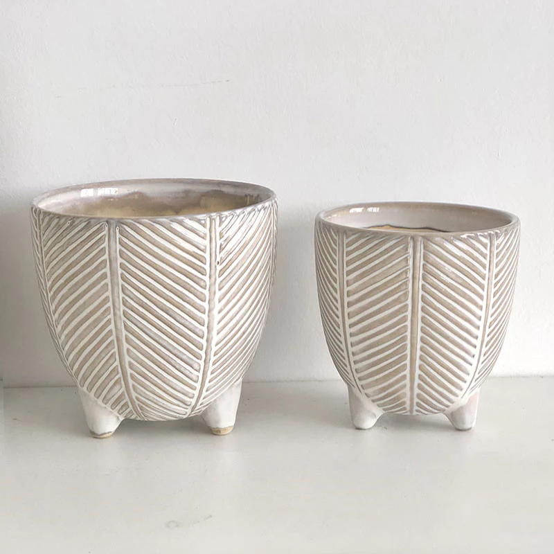 Add instant vacation vibes to your home décor with charming ceramic planters and feel-good foliage. Plants add a natural and positive touch to any space. Surround yourself with a few of our modern Vacation Island Ceramic Planters and put yourself in vacation mode year-round. Our stylish ceramic planters feature abstract patterns in a beautiful blend of white and cream. Each planter is either footed or has a contrasting base or edge. These modern decorative planters are an easy solution to taking your houseplant style up a few notches. Crafted of ceramic, each delightful textured planter has a handmade touch. The perfect size to sit on top of a book on a coffee table or bookcase. These planters make ideal accents grouped on a wooden tray on a kitchen counter. Or use them individually on a bathroom vanity, bedroom dresser or guest room bedside table. Pop a houseplant into one of our Vacation Island Ceramic Planters and offer it as a housewarming gift. You’ve got endless options.