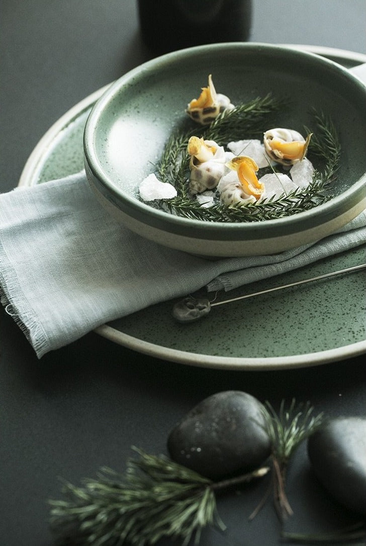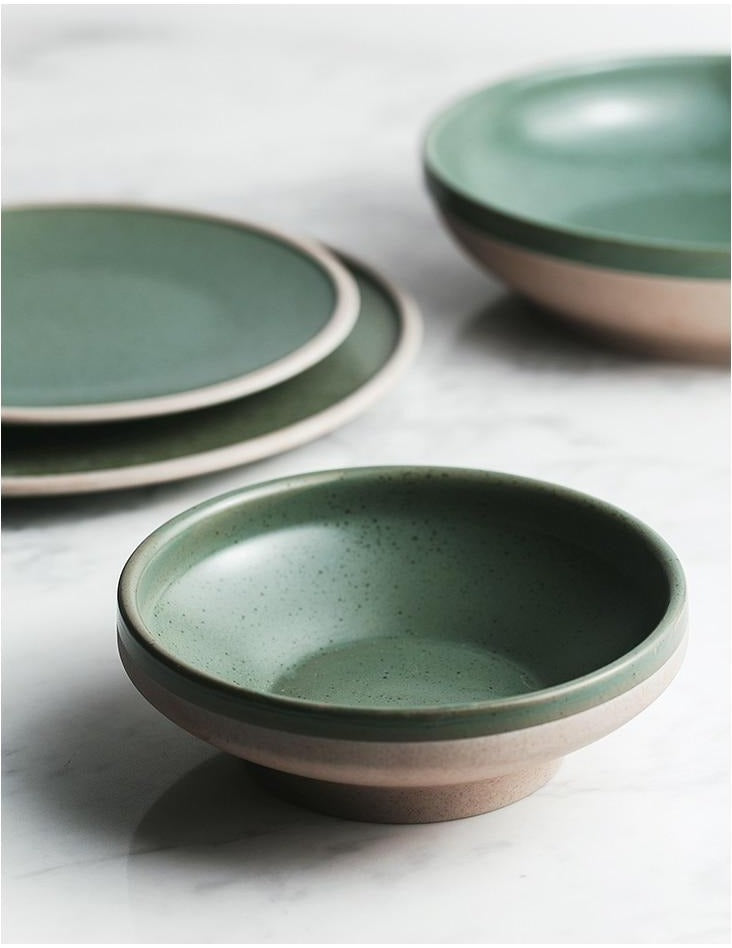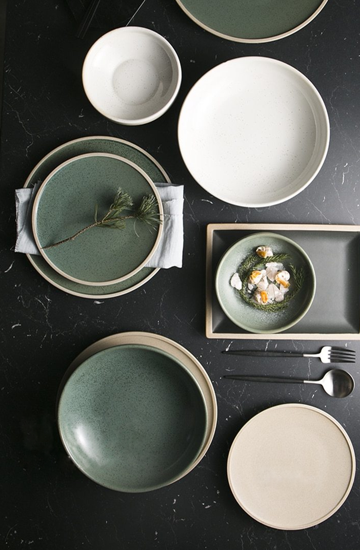 Dinnerware with a soothing color palette blends beautifully in any kitchen or dining room. With a vintage green hue and a contrasting rim, our high quality ceramic dinner plates and bowls are a magnificent addition to your everyday dinnerware.