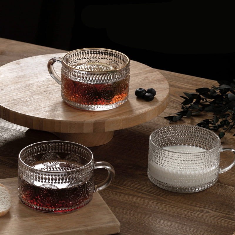 Indulge in the timeless charm of our Vintage Texture Glass Cup with Handle, a true classic crafted from premium transparent glass. Its round shape adds a touch of elegance to your beverage experience, whether you're sipping morning coffee or enjoying a refreshing iced tea. Crafted with eco-consciousness in mind, this glass cup bears the CIQ certification, ensuring its quality and safety. Embrace sustainability with every sip, as this eco-friendly drinkware enhances your enjoyment guilt-free. The textured design adds a nostalgic flair, making each sip a journey through time. Elevate your drinkware collection with this exquisite piece, blending sophistication with eco-consciousness seamlessly.
