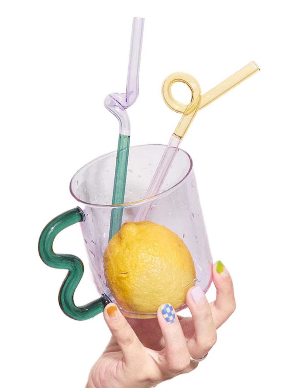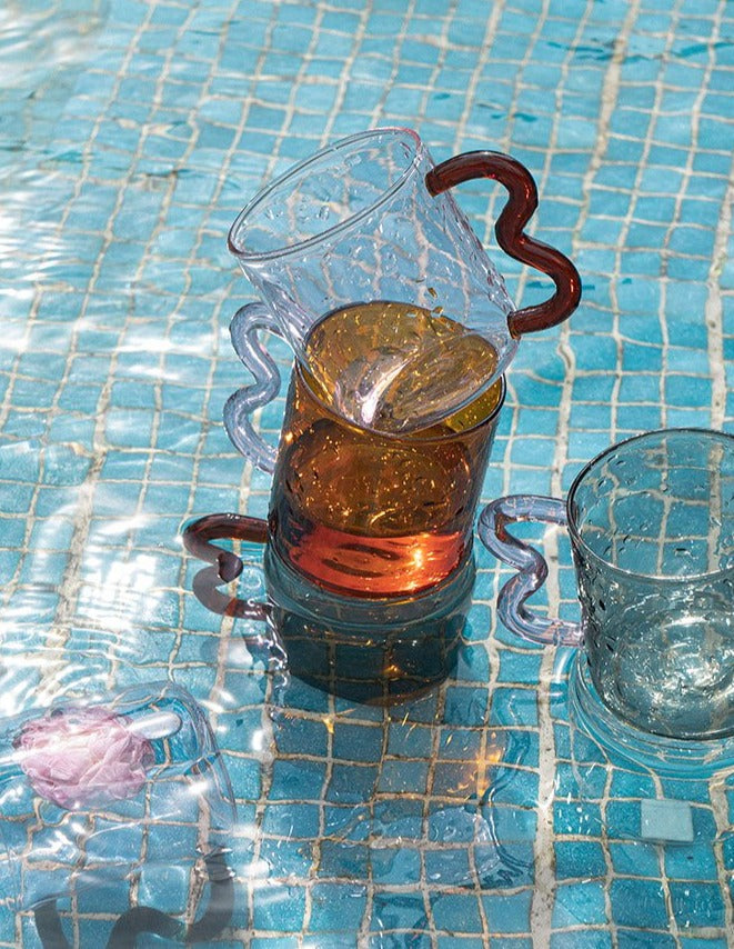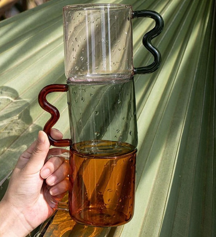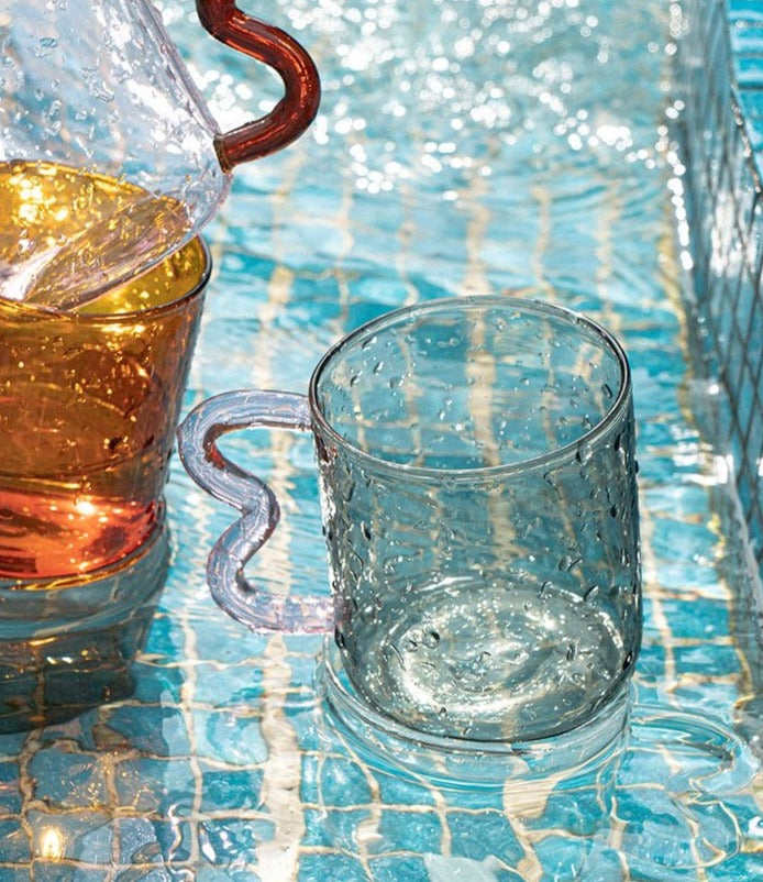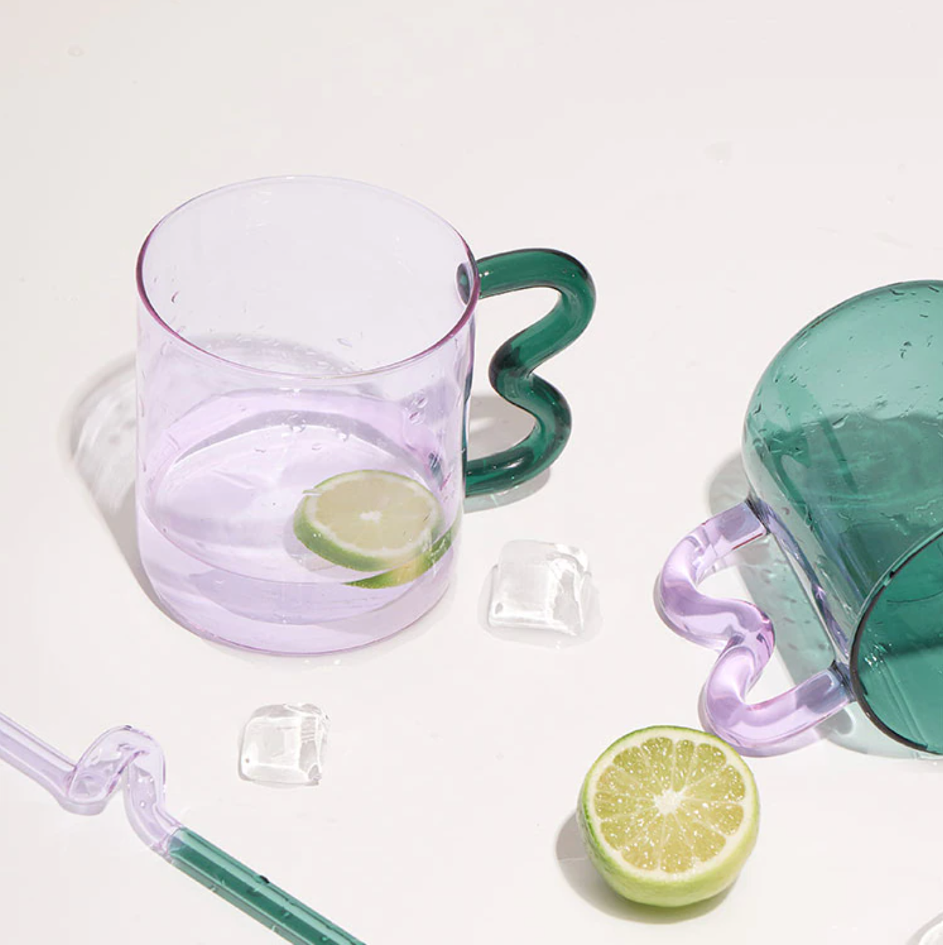 Wrap your hands around this pretty Borosilicate glass mug and you’re sure to smile with every sip. Its whimsical design with wavy handle in a contrasting color gives this festive glass mug its irresistible charm. Cheers to unique designs taking their proper place at your coffee station.