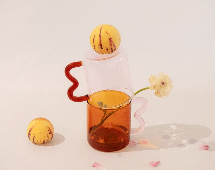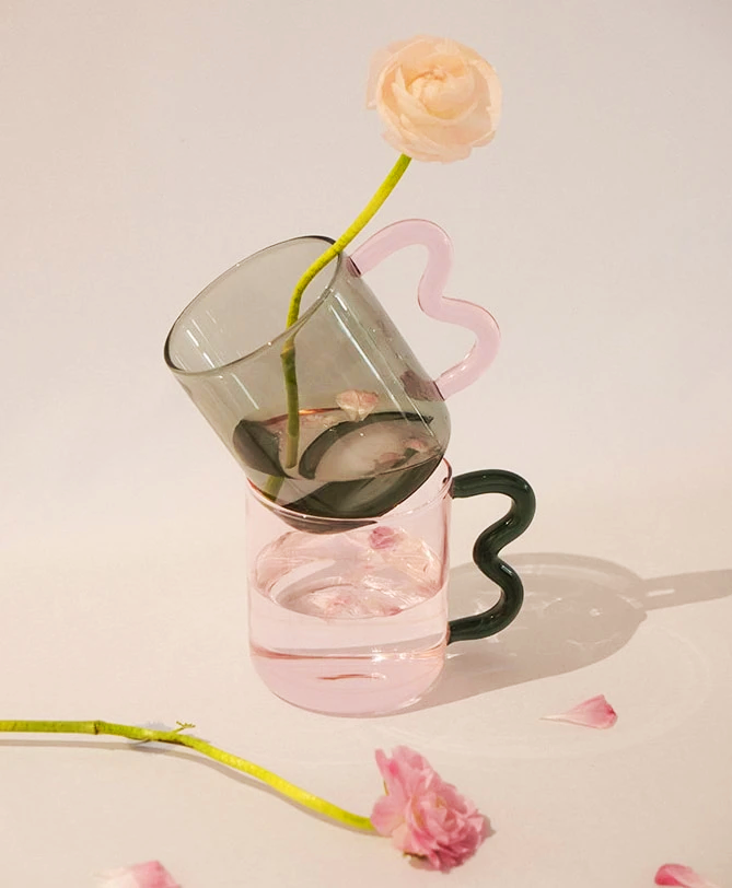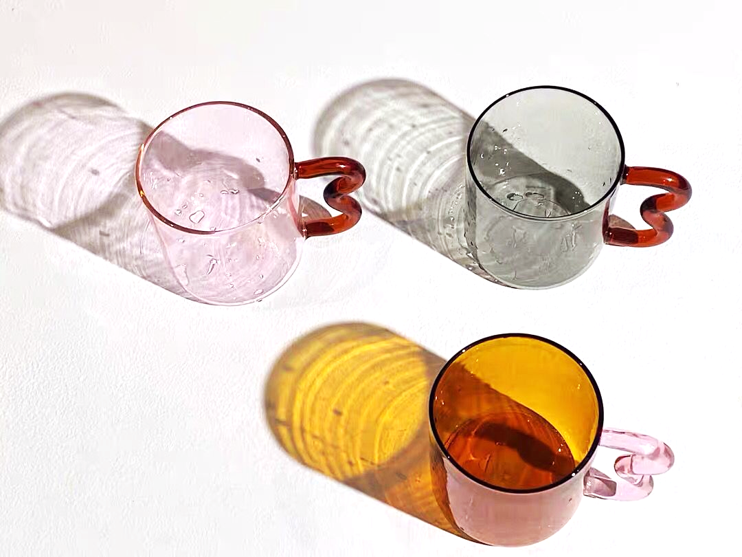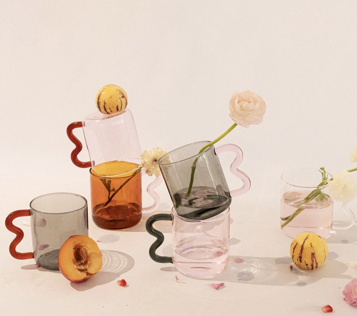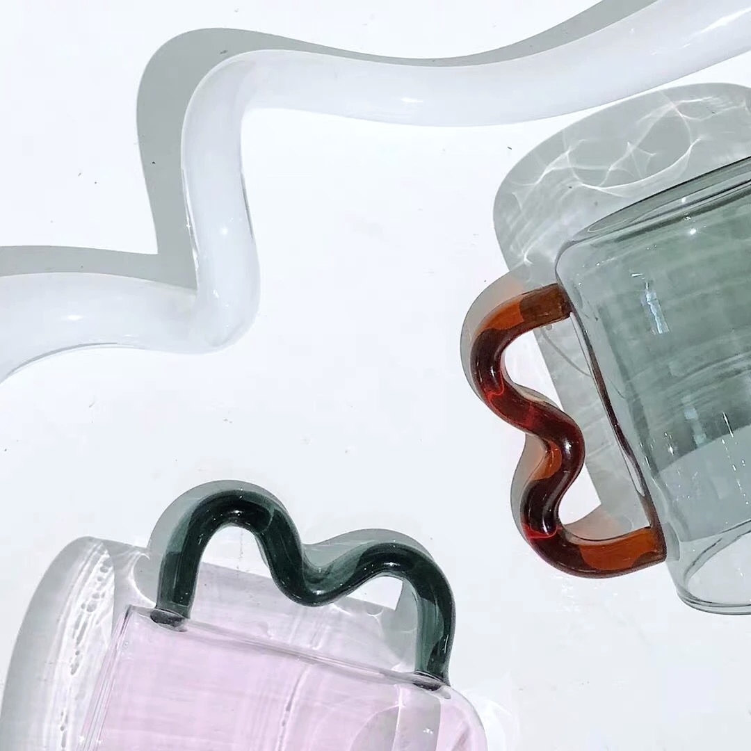Wrap your hands around this pretty Borosilicate glass mug and you’re sure to smile with every sip. Its whimsical design with wavy handle in a contrasting color gives this festive glass mug its irresistible charm. Cheers to unique designs taking their proper place at your coffee station.