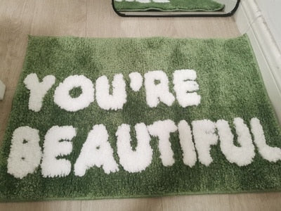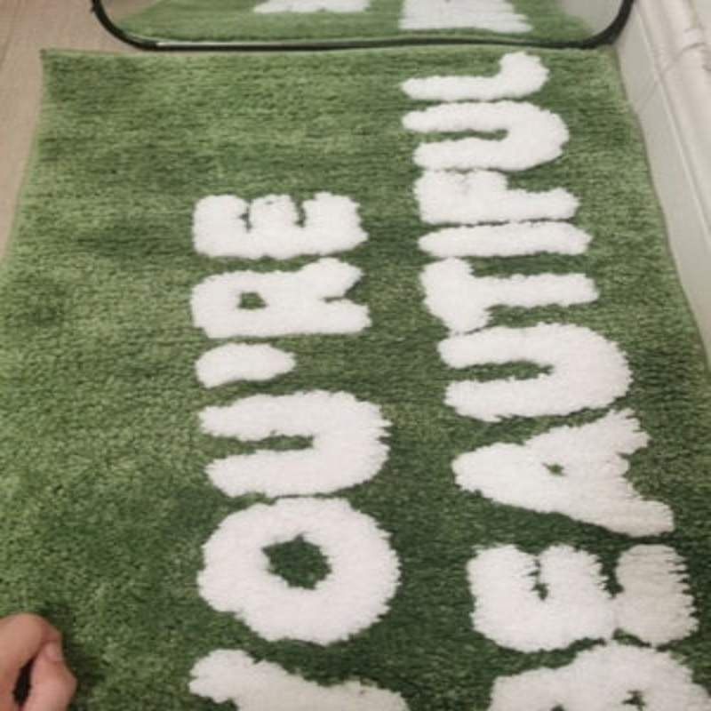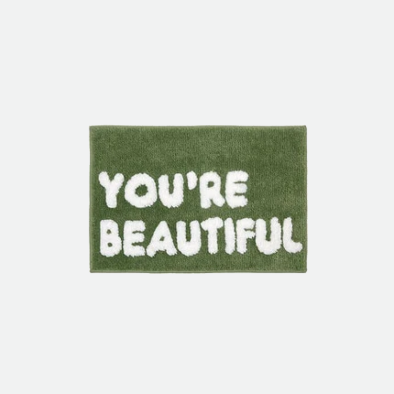 What’s better than looking in the mirror and feeling beautiful? Being reminded every time you step out of the tub or shower. Our Plush Typography Bath Mat is just the thing to keep your confidence level high. This plush bath mat is available in bright, beautiful colors and does so much more than just absorb water. You are kind and caring and lovely, inside and out.